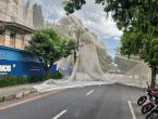 Vento forte derruba rede de proteção de prédio em obras e interdita rua em...