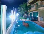 VÍDEO - Animal cai em piscina após fugir de farra do boi em Bombinhas