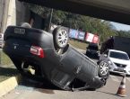 Carro capota e homem fica ferido em acidente na marginal da BR-101, em Joinville
