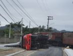 Caminhão tomba e derruba poste na BR-280, em São Francisco do Sul