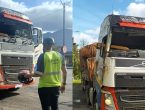 Caminhoneiro usando capacete é flagrado dirigindo carreta sem para brisa na BR-101, em Joinville
