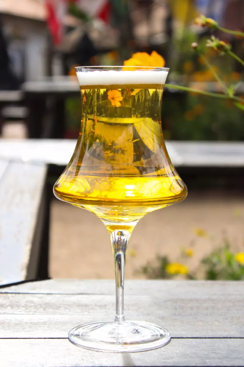 A boca mais aberta e o bojo generoso ajudam a formar uma espuma densa e cremosa enquanto capturam os aromas frutados e especiais típicos (casca de laranja, coentro, cravo).