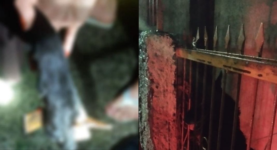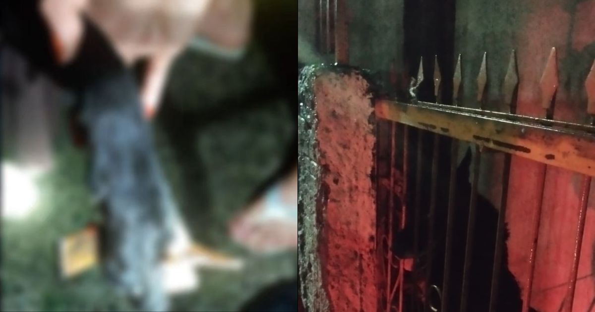 Segundo os bombeiros, o animal se assustou com as detonações e, ao tentar saltar ou atravessar um portão, acabou perfurando a pata dianteira direita em uma das lanças da grade metálica, ficando preso à estrutura.