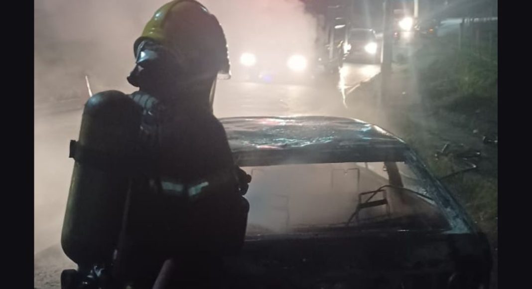 Ao chegar ao local, os bombeiros encontraram o carro totalmente em chamas. O motorista já estava fora do veículo e não apresentava ferimentos. Segundo o relato dele, o fogo teria começado na parte frontal direita do carro. Antes que as chamas se alastrassem, ele conseguiu sair do carro e retirar alguns pertences pessoais.