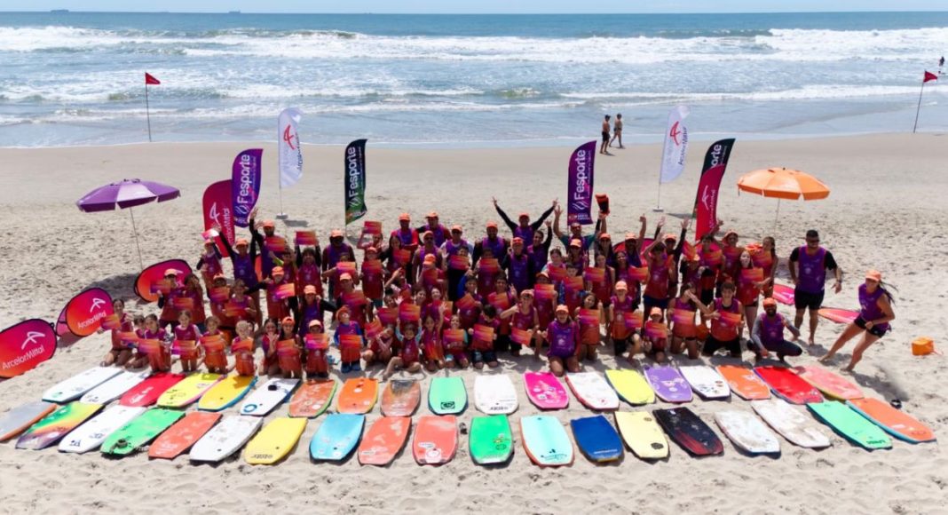 A pentacampeã mundial de bodyboarding, Neymara Carvalho, e a filha dela, a bicampeã mundial Luna Hardman, conduziram um aulão social para cerca de 60 crianças e adolescentes na sexta-feira, 28, na Prainha, em São Francisco do Sul. A atividade foi promovida pela ArcelorMittal e marcou o início da programação da etapa final do Circuito Catarinense de Bodyboarding 2025.