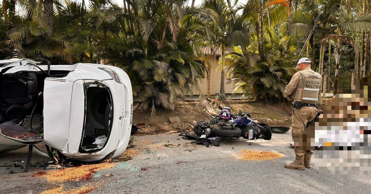 Um grave acidente envolvendo uma moto e um carro causou a morte de dois homens nesta sexta-feira, 12. A colisão aconteceu por volta das 7h, na SC-108, no bairro Barro Branco, em Guaramirim.