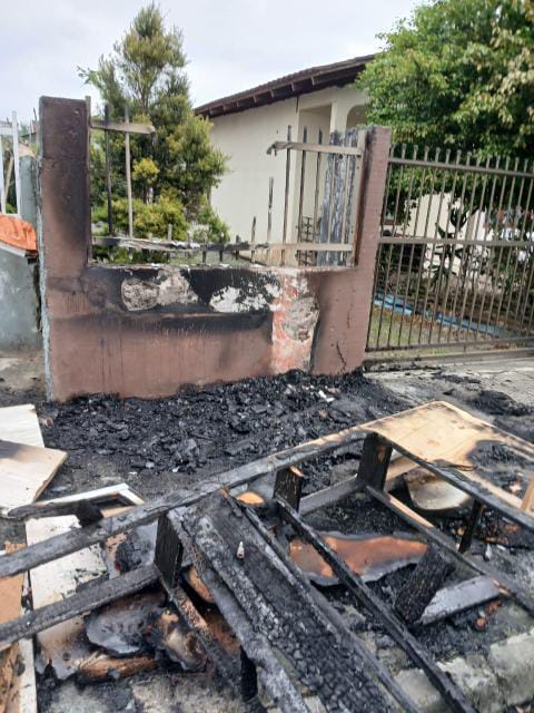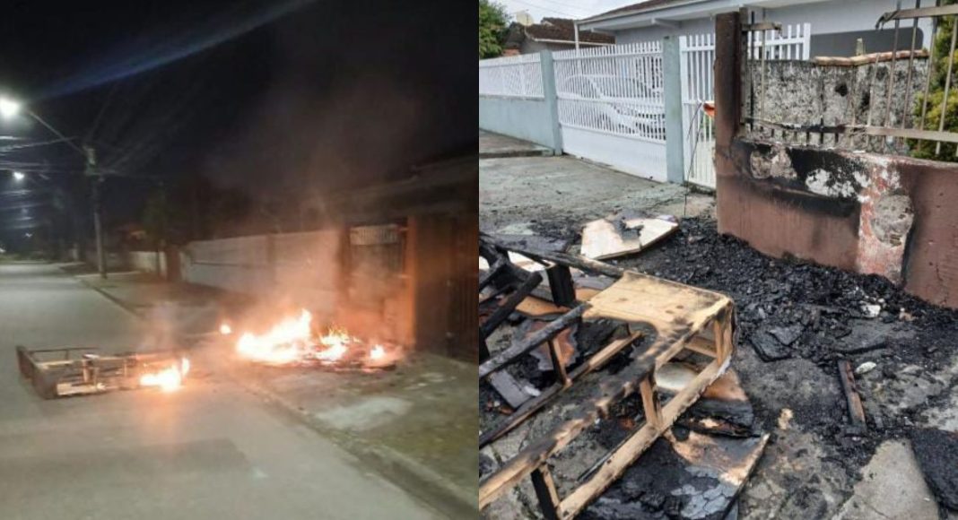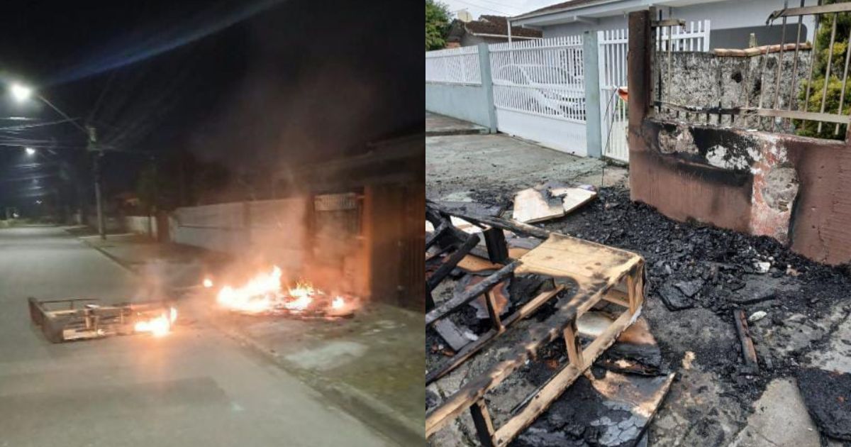 Fogo ateado em cama na madrugada danifica muro e cerca de residência em Joinville