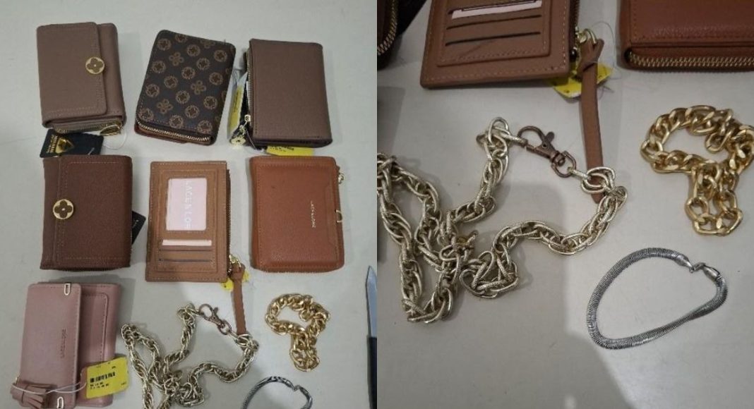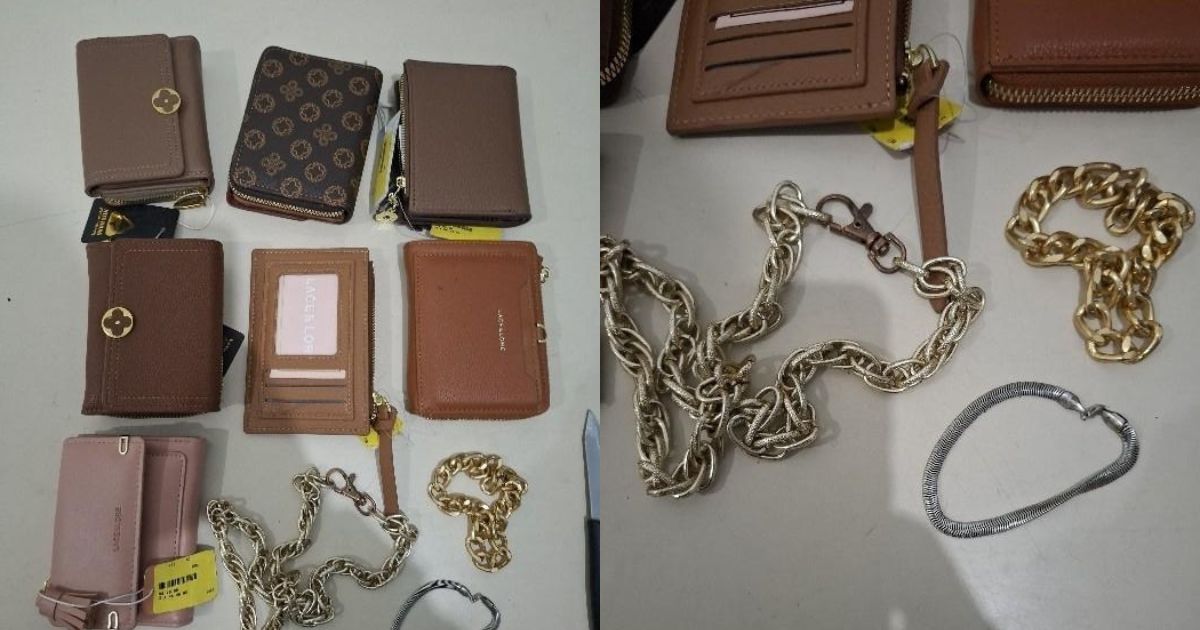Durante buscas na casa, os PMs encontraram um um saco preto com sete carteiras pertencentes a loja, além de duas correntes douradas e uma prateada. Três facas também foram apreendidas.