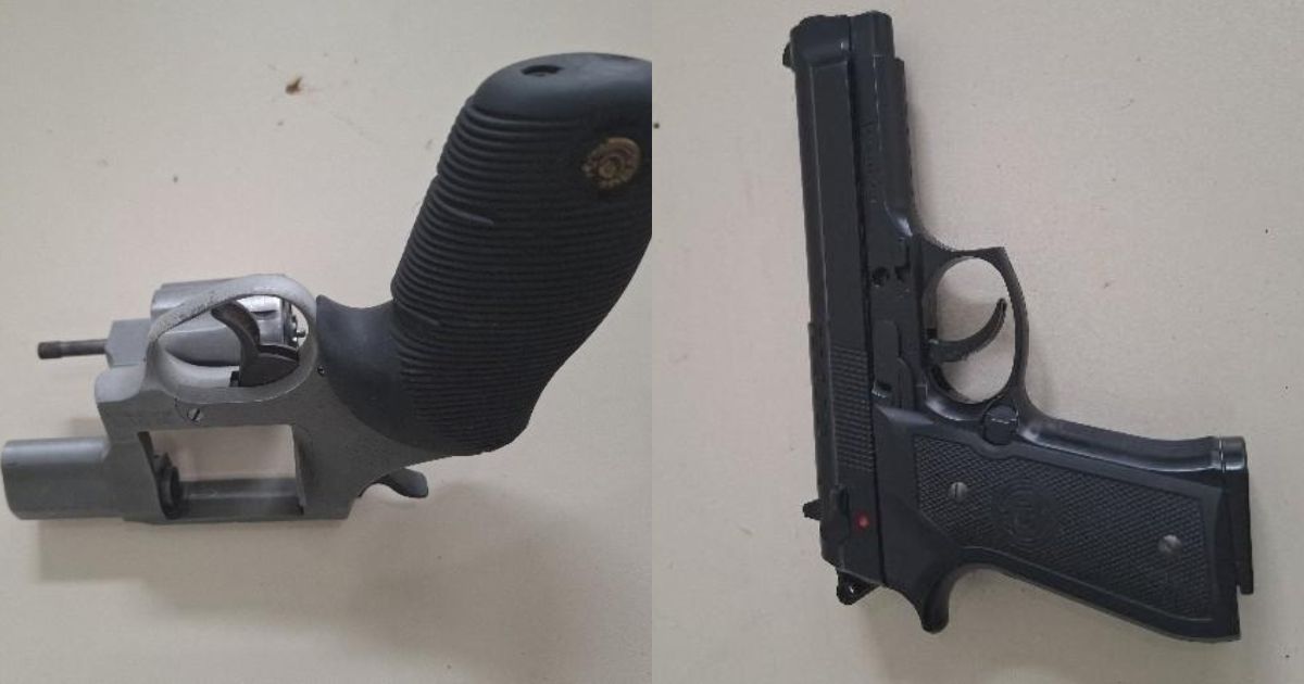 Durante buscas na área externa da residência, os policiais encontraram um revólver calibre .38, da marca Taurus, modelo Special Ultra Lite, com capacidade para sete cartuchos, além de um simulacro de pistola. Também foram apreendidas seis munições, sendo três intactas e três deflagradas.