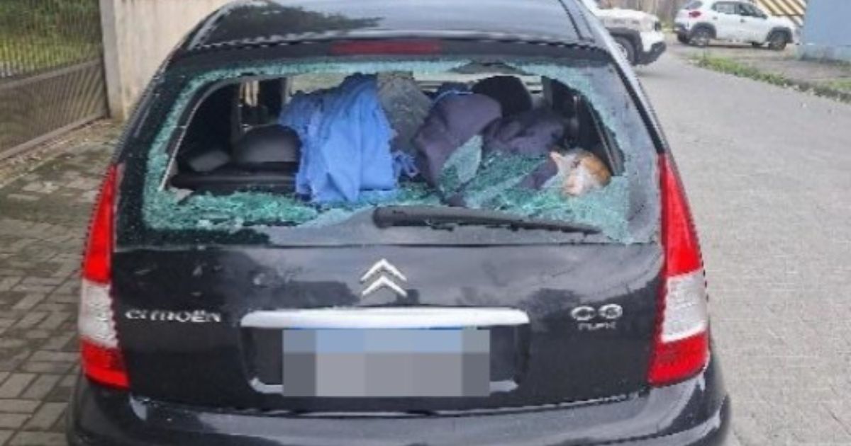 No local indicado, os policiais encontraram o Citroën C3 com o vidro quebrado e marcas de sangue. Testemunhas confirmaram que o homem ferido tentou abrir o carro e foi contido por outras pessoas que estavam próximas.