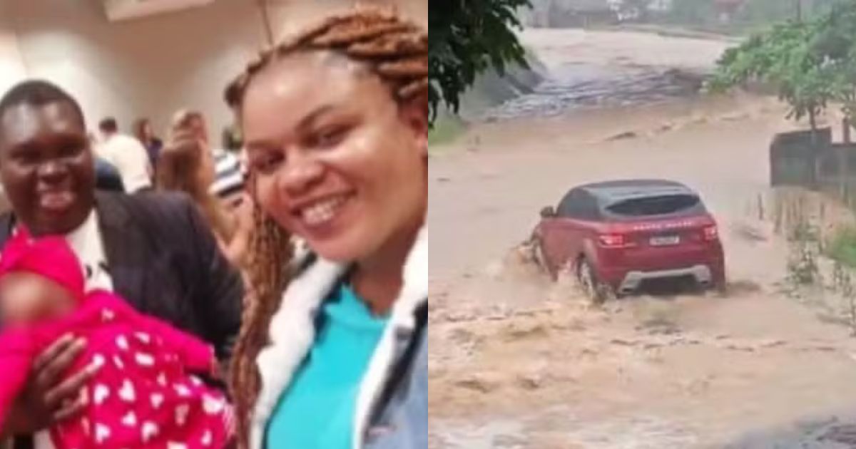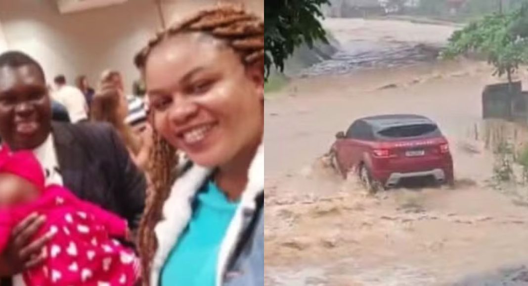 A família estava em uma Land Rover vermelha quando o carro foi tomado pela enxurrada durante as chuvas da manhã.