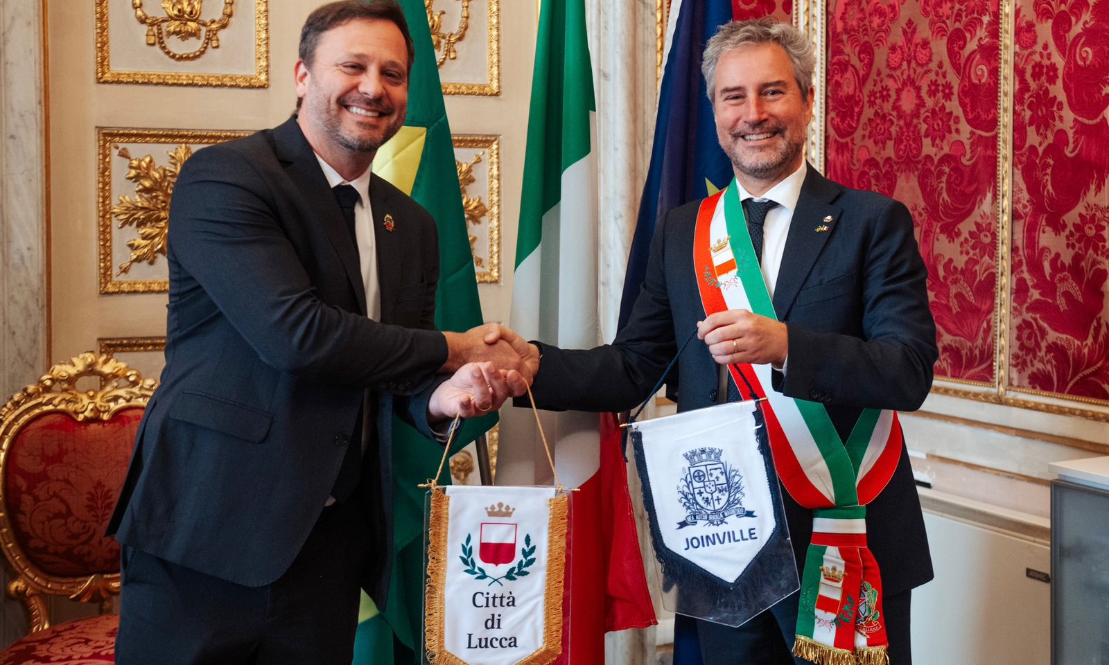 Nesta segunda-feira, 3, a Prefeitura de Joinville oficializou a intenção de parceria com o município italiano de Lucca, por meio do Programa Cidades-Irmãs. Durante missão oficial na Itália, o prefeito Adriano Silva assinou uma carta de intenções com o prefeito Mario Pardini, estabelecendo um programa de atividades e cooperação mútua.