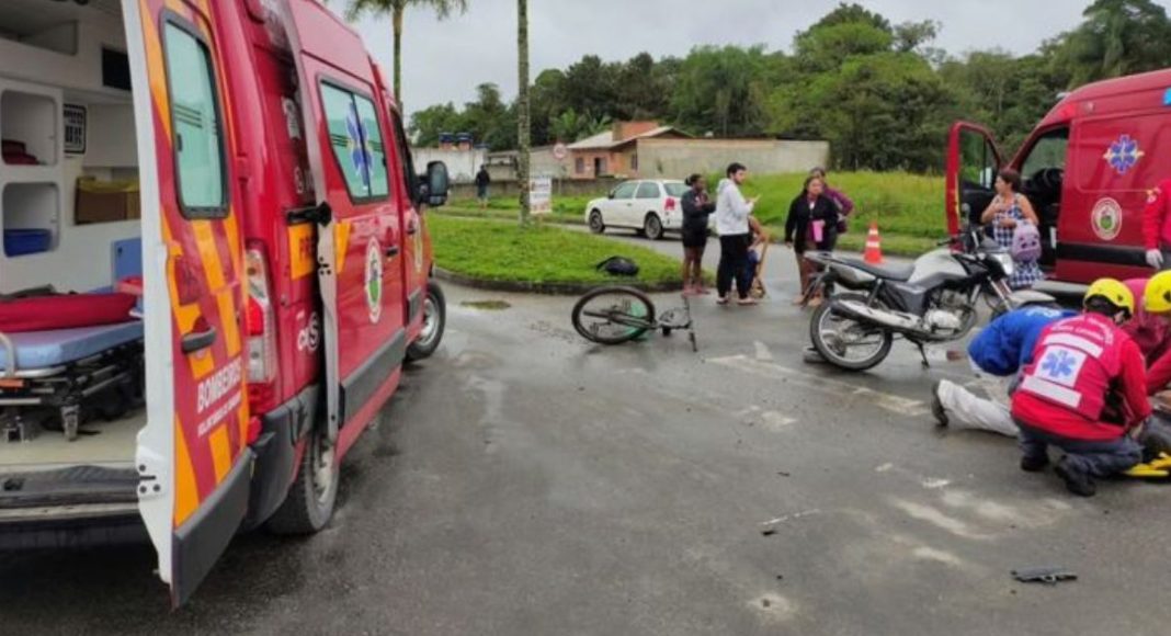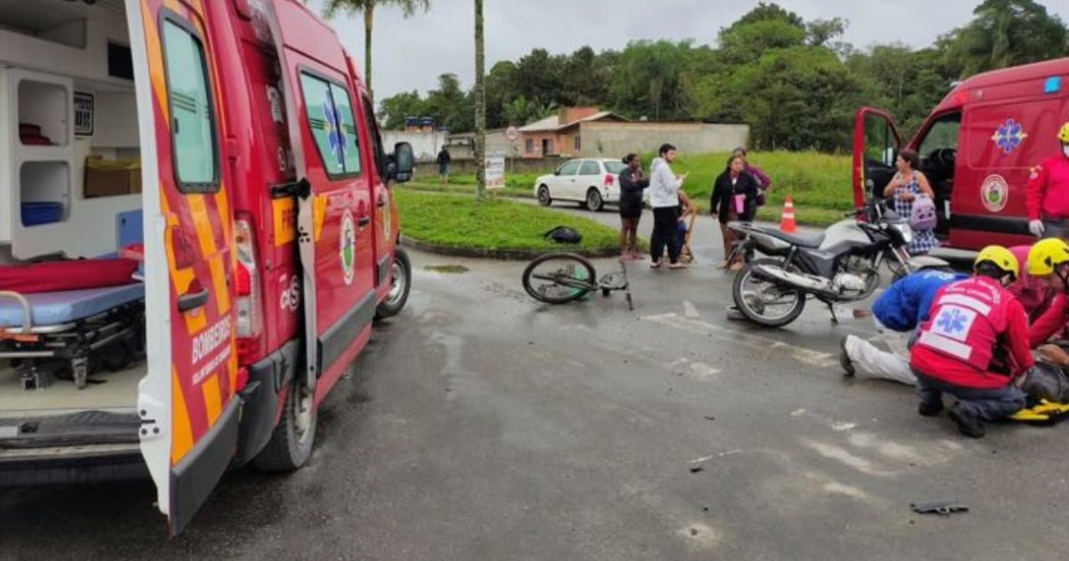 Motociclista e adolescente ficam gravemente feridos após acidente em Araquari