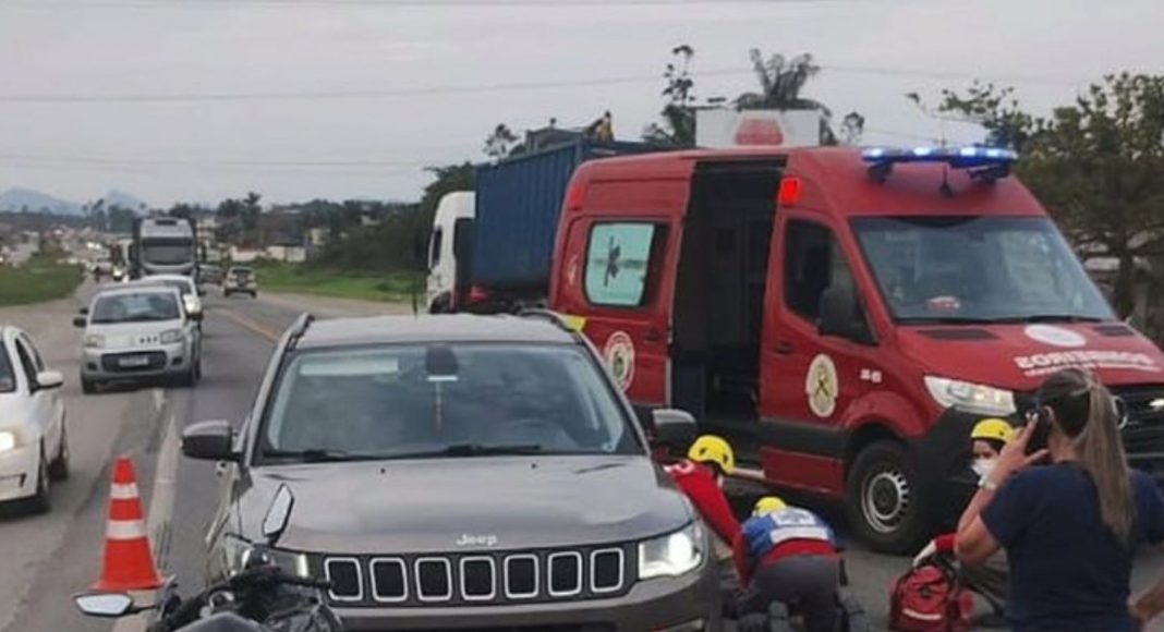A colisão aconteceu por volta de 16h25 na altura do bairro Porto Grande. O motociclista foi encontrado pelos bombeiros voluntários de Araquari na pista.