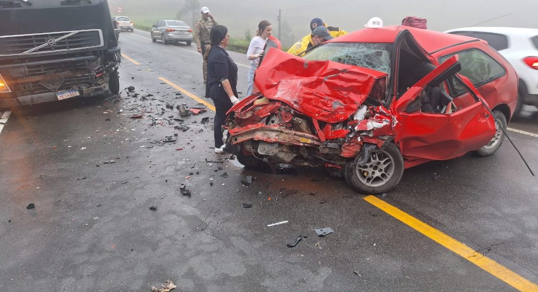 O motorista conduzia um Volkswagen Gol. Um jovem de 20 anos estava no carro e sofreu lesões graves. Já o motorista do caminhão, que carregava 7 toneladas de resíduos, de 48 anos, não se feriu. O acidente aconteceu no sentido Joinville-Campo Alegre. No momento do acidente, havia neblina com garoa e a pista estava molhada.