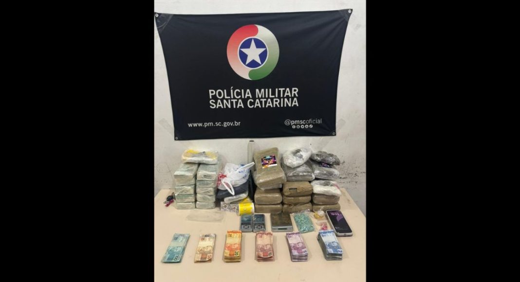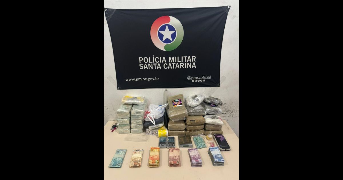 No pátio da residência, dentro de outro veículo, um Volkswagen Gol cinza, foram encontrados tabletes de maconha. As buscas no imóvel resultaram na apreensão de uma grande quantidade de entorpecentes, além de mais de R$ 3 mil em espécie.