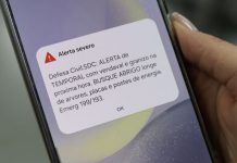Alerta severo foi enviado para celulares no fim da tarde desta quinta-feira