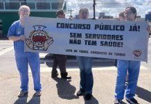 Servidores do Hospital Regional de Joinville fazem protesto por concurso público durante cerimônia de...