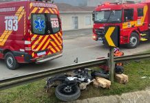 Adolescente fica presa em mureta após cair de moto no Norte de SC