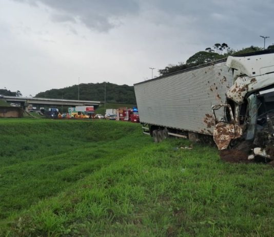 VÍDEO: acidente entre carreta e caminhão causa congestionamento de 3 km em Garuva