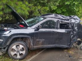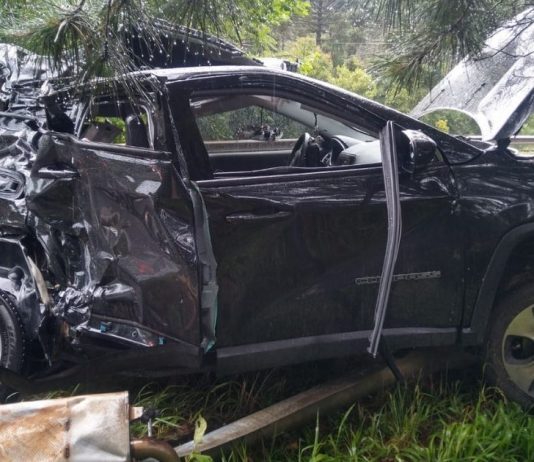 Carro sai da pista e motorista fica ferida na Serra Dona Francisca, em Joinville