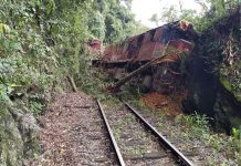 VÍDEO - Trem descarrila após queda de barreiras no Norte de SC