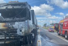 Incêndio em cabine de caminhão mobiliza bombeiros na BR-280, em Araquari