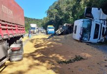 Serra Dona Francisca é interditada devido tombamento de caminhão