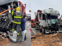 Engavetamento entre caminhões é registrado na BR-101 no Litoral Norte