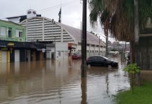 Ruas próximas ao terminal de ônibus estão completamente alagadas