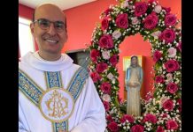 Padre Jackson embarcou segunda-feira para a Itália com amigos e a madrinha