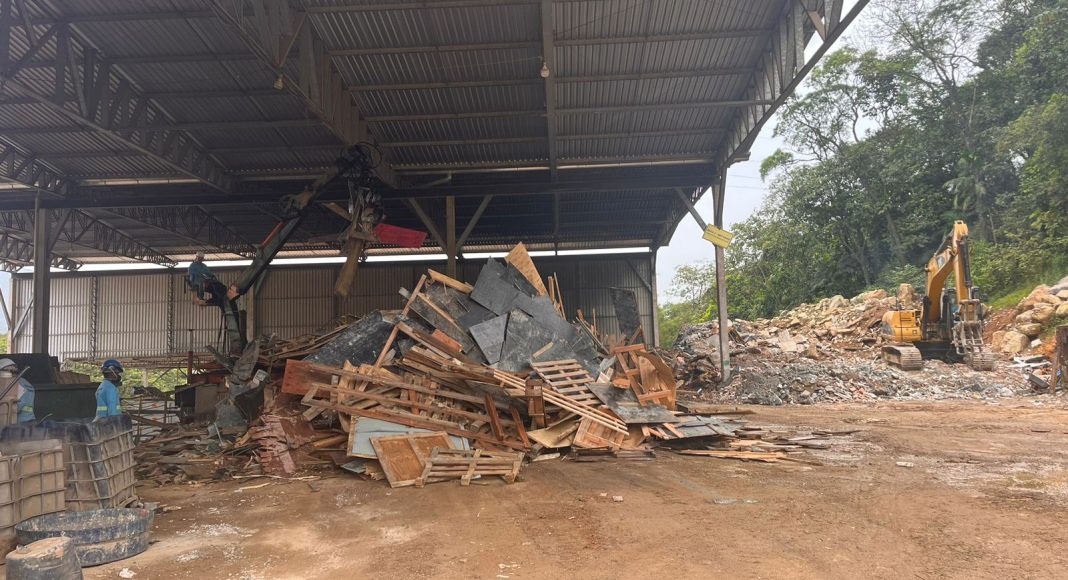 Israel explica que os materiais de alvenaria passam por britagem e peneiramento, transformando-se em mais três subprodutos: areia reciclada, saibro tratado e brita, que voltam ao mercado como matéria-prima para venda. Já a madeira é triturada e convertida em cavaco, pequenos pedaços usados como biomassa para caldeiras.