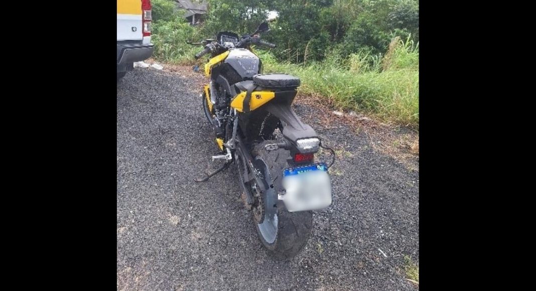 A motocicleta é uma Suzuki. Conforme a Polícia Militar Rodoviária (PMRv), o piloto perdeu o controle da moto, o que ocasionou a queda.