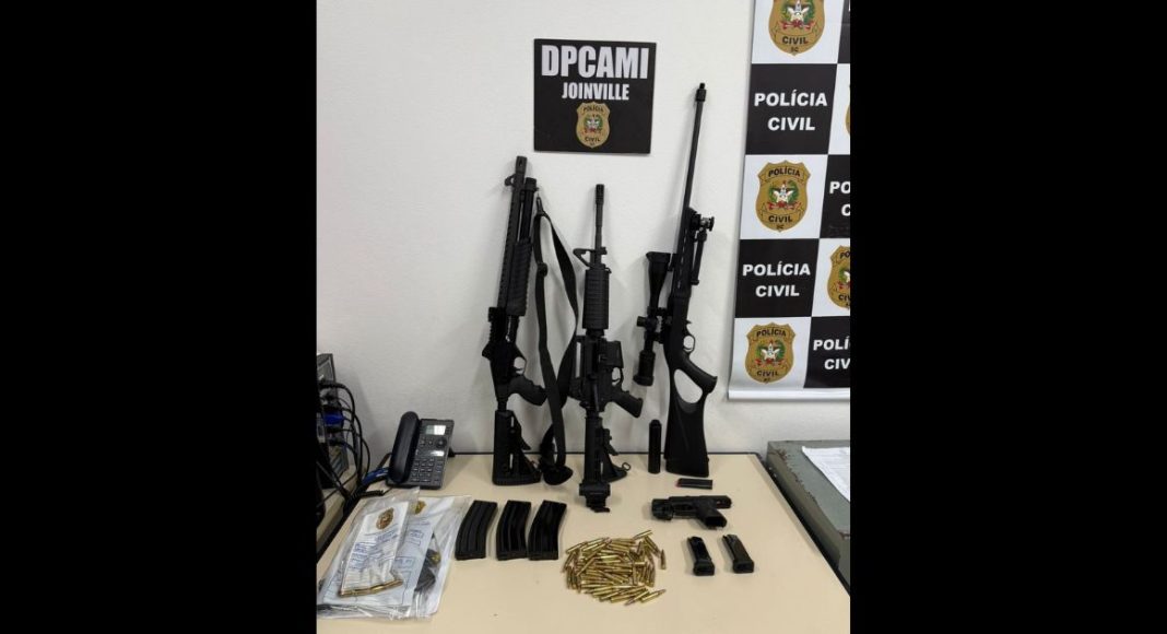 Na manhã desta quinta-feira, 9, a Polícia Civil de Joinville prendeu um homem de 39 anos e seu pai pelos crimes de posse ilegal de arma de fogo de uso permitido e restrito.