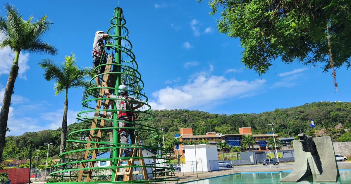 A montagem da decoração de Natal em Joinville começou nesta terça-feira, 21. Um dos pontos é a praça Dario Salles, no Centro, em que a tradicional árvore natalina tomou forma no local.
