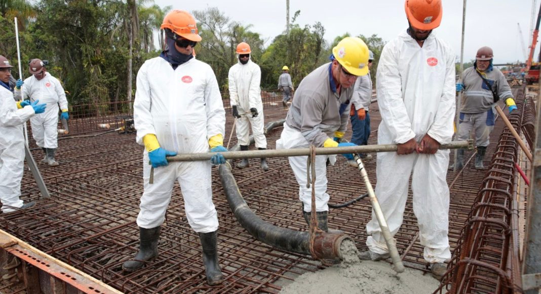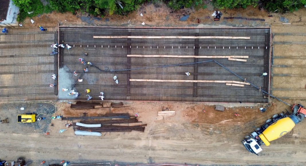 “É uma laje com cerca de 120 metros e, nesta quinta, é a primeira etapa da concretagem dos quatro vãos da laje. O primeiro vão tem 30 metros de comprimento e um volume total de concreto de 150 metros cúbicos”, explica Paulo Castro, diretor-executivo da Secretaria de Infraestrutura Urbana (Seinfra). Foram utilizados 15 caminhões na concretagem nesta primeira fase.