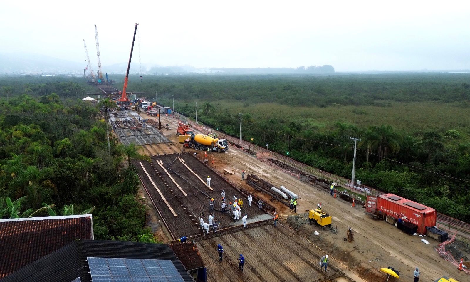 Prefeitura inicia concretagem da laje de transição na margem da Ponte Joinville