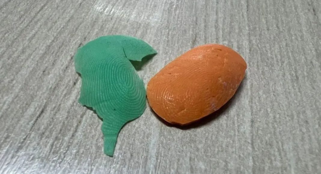 Durante a abordagem, a auxiliar entregou espontaneamente a prótese de silicone com a impressão digital do dentista, que estava guardada em sua bolsa.
