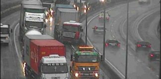 Acidente entre carreta e caminhão causa congestionamento na BR-101, em Joinville