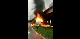 VIDEO – Caminhão pega fogo após cair de viaduto na BR-101,...