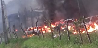 Incêndio em ferro-velho às margens da BR-101 mobiliza bombeiros em Barra...