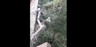 Caminhão bate em ponte e cai em rio na Serra Catarinense