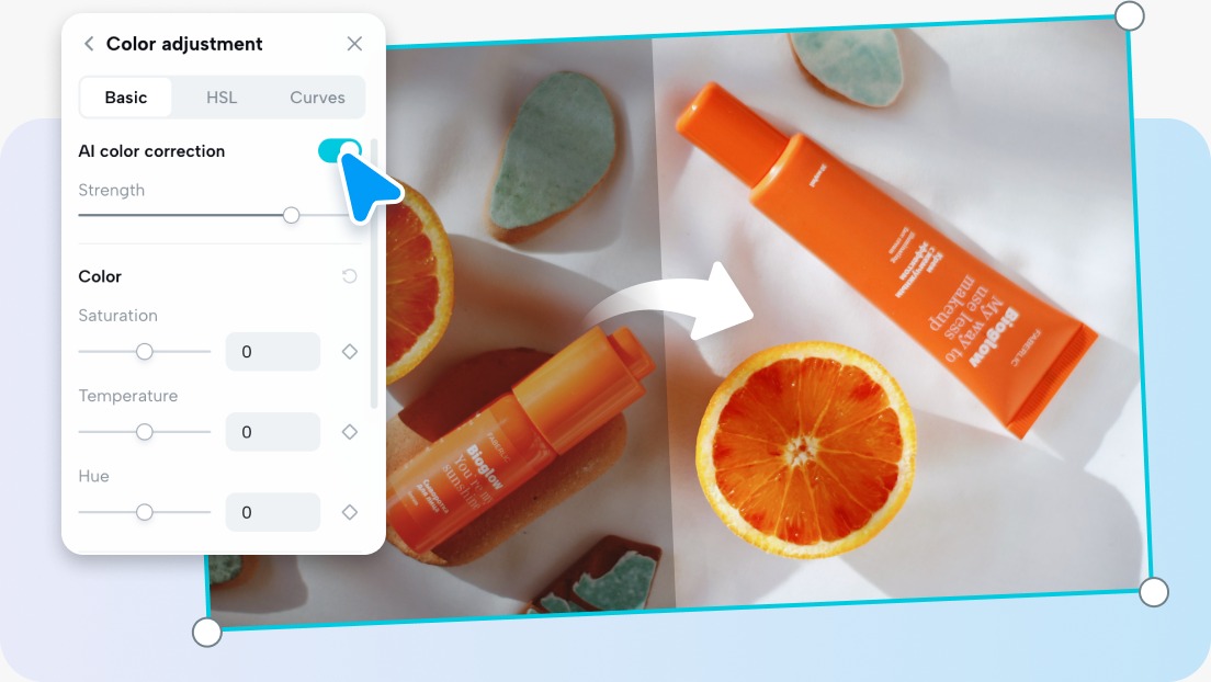 Use o editor para revisar legendas, adicionar textos, ajustar o tamanho, mudar cores e alinhar elementos. É possível aplicar filtros, incluir música de fundo, remover o fundo ou melhorar trechos que precisem de mais clareza.