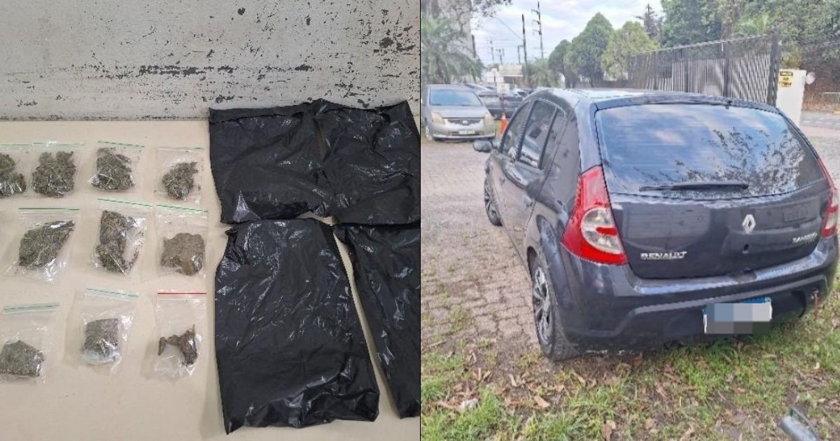 Durante rondas no bairro Jardim Iririú, policiais militares localizaram o automóvel circulando com três ocupantes. Em consulta, foi verificado que o licenciamento estava atrasado desde 2023. Ao realizar a abordagem, os agentes perceberam forte odor de maconha vindo do interior do carro.