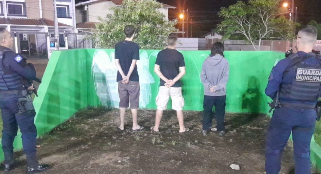 Três pessoas foram presas em flagrante pela Guarda Municipal na noite deste domingo, 4, suspeitas de pichar o patrimônio público no Parque da Cidade, em Joinville. A ação ocorreu após denúncia feita por um cidadão por meio do telefone 153.