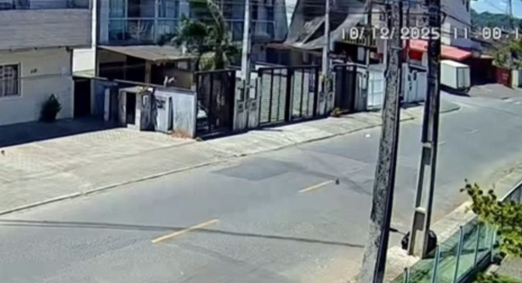 A ação foi registrada por uma câmera de segurança. Nas imagens, é possível ver o momento em que a estrutura se solta e é levada pela força do vento. Ninguém ficou ferido.