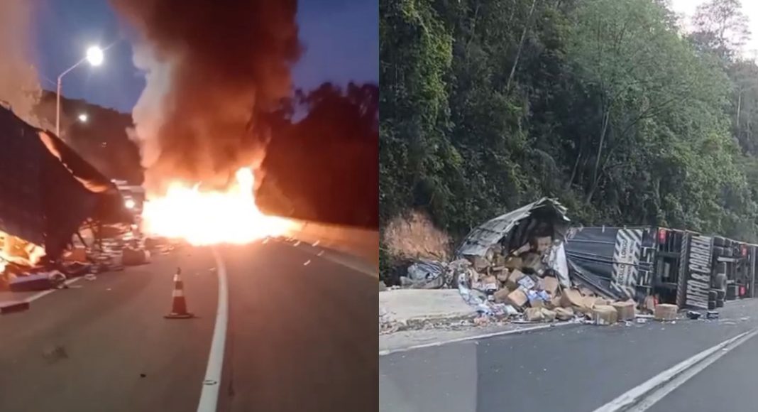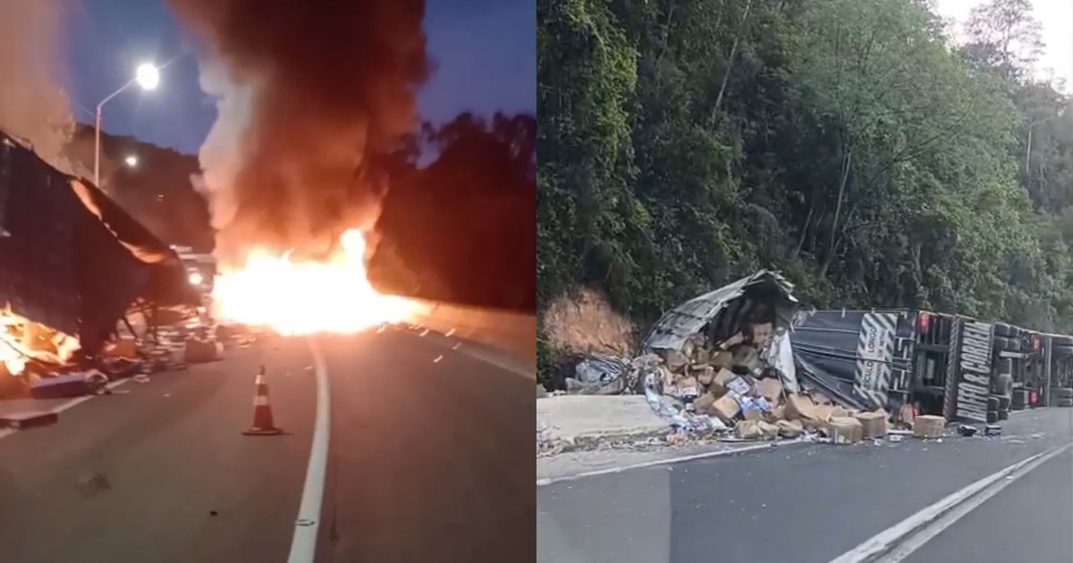 Um grave acidente entre duas carretas e uma van causou um incêndio e interditou totalmente a BR-376, em Guaratuba, no Paraná, sentido a Santa Catarina. A colisão aconteceu na madrugada desta quarta-feira, 12, por volta das 4h45.