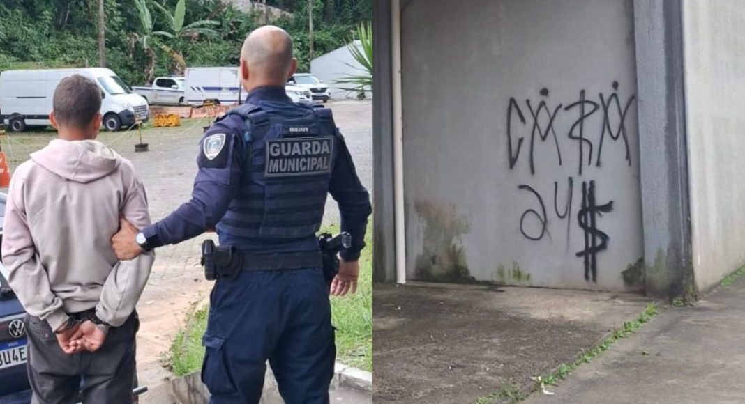Segundo a Guarda Municipal, os agentes de segurança flagraram o momento da pichação e acionaram a polícia. O suspeito foi abordado com uma lata de spray e com as mãos sujas de tinta. Aos policiais, ele confessou ter feito a pichação.
