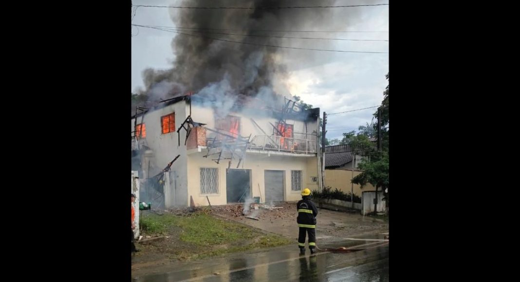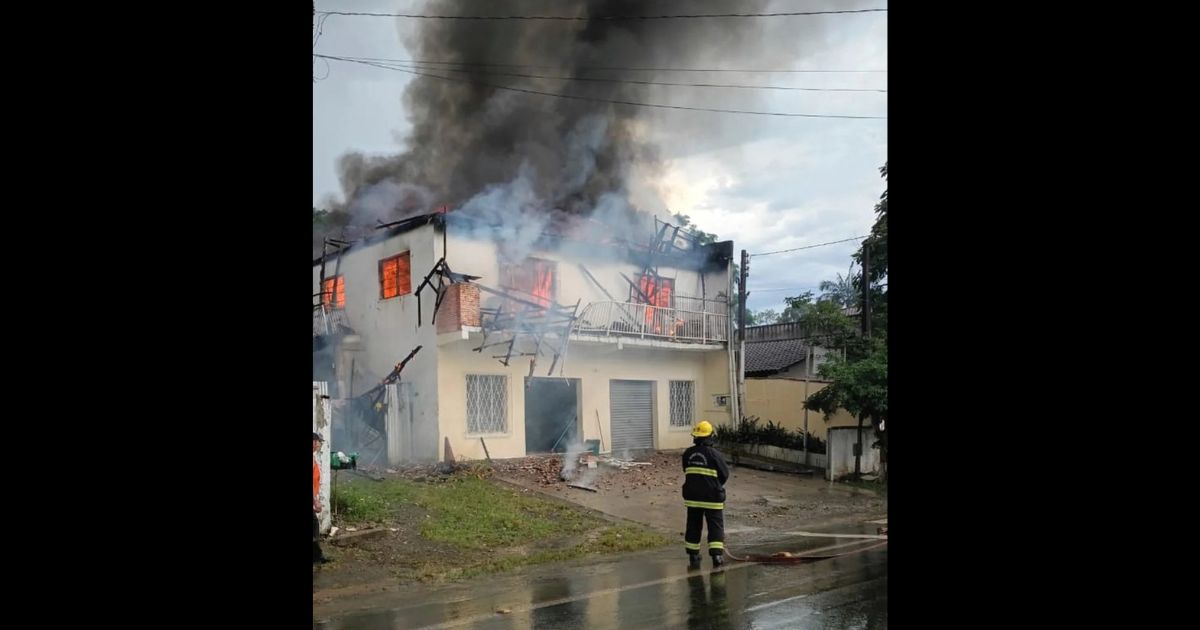 VÍDEO – Incêndio destrói casa durante tempestade no bairro Iririú, em Joinville