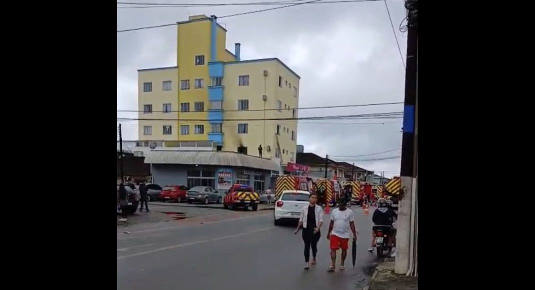 VÍDEO – Incêndio em edifício residencial mobiliza equipes do Corpo de Bombeiros em Joinville